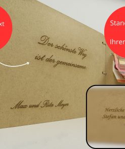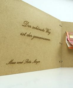 Diese stilvolle und nachhaltige Karte bietet eine elegante Möglichkeit, Ihre Glückwünsche zu übermitteln und gleichzeitig ein praktisches Geschenk zu machen. Durch die Personalisierung wird die Karte zu einem unvergesslichen Erinnerungsstück, dass das Brautpaar noch lange nach der Hochzeit schätzen wird.