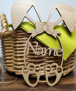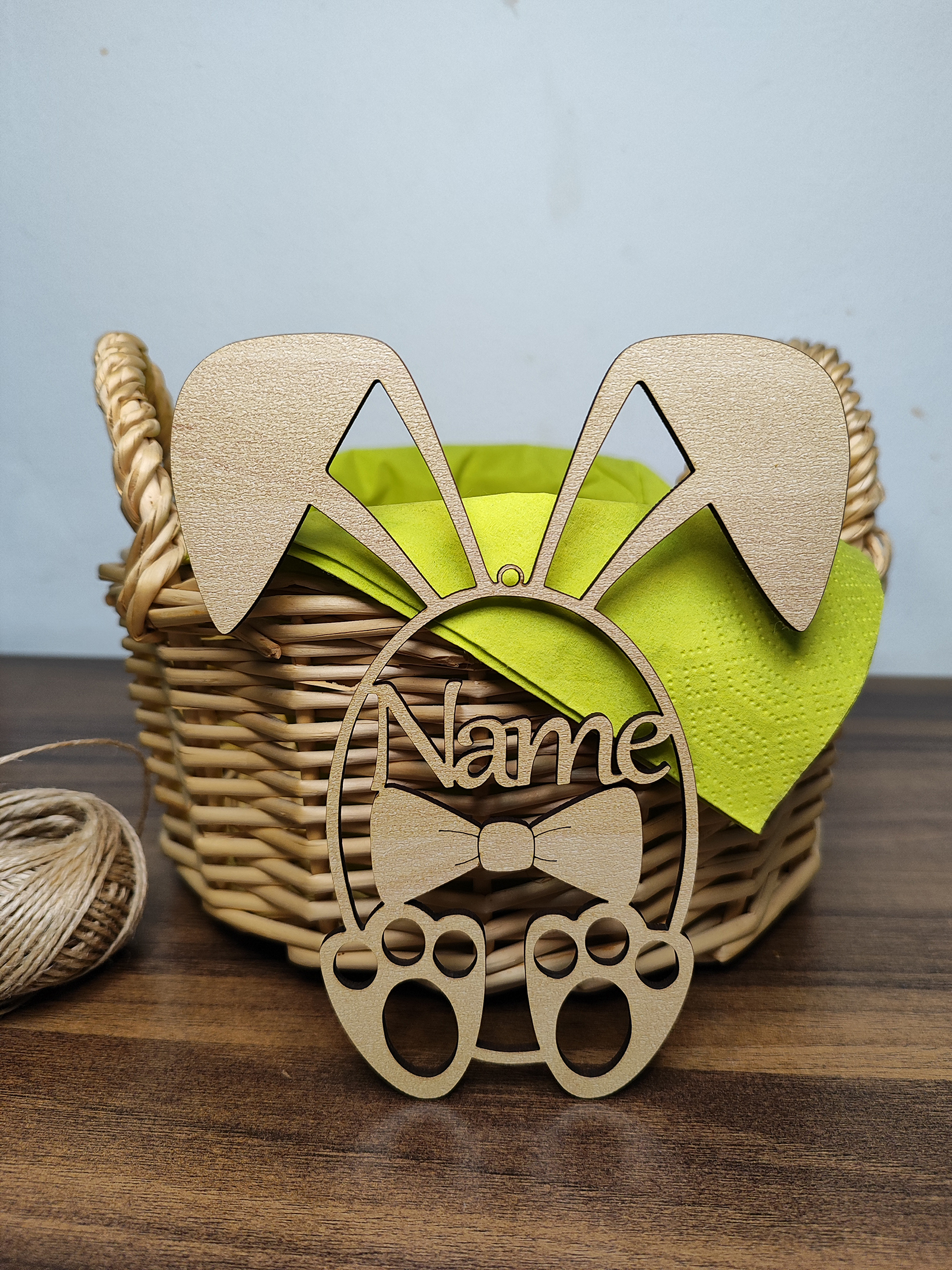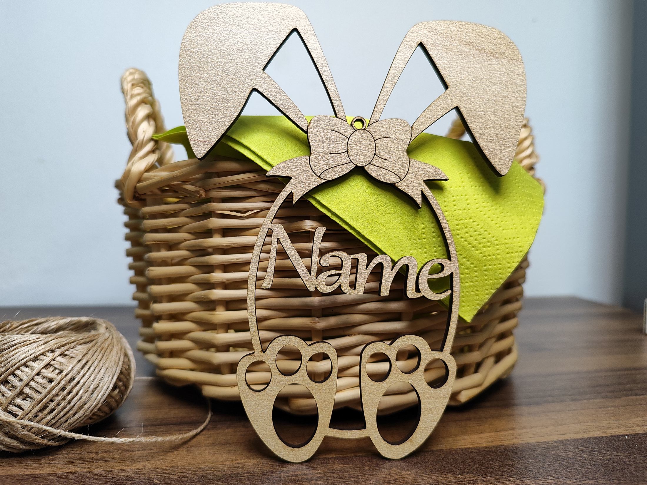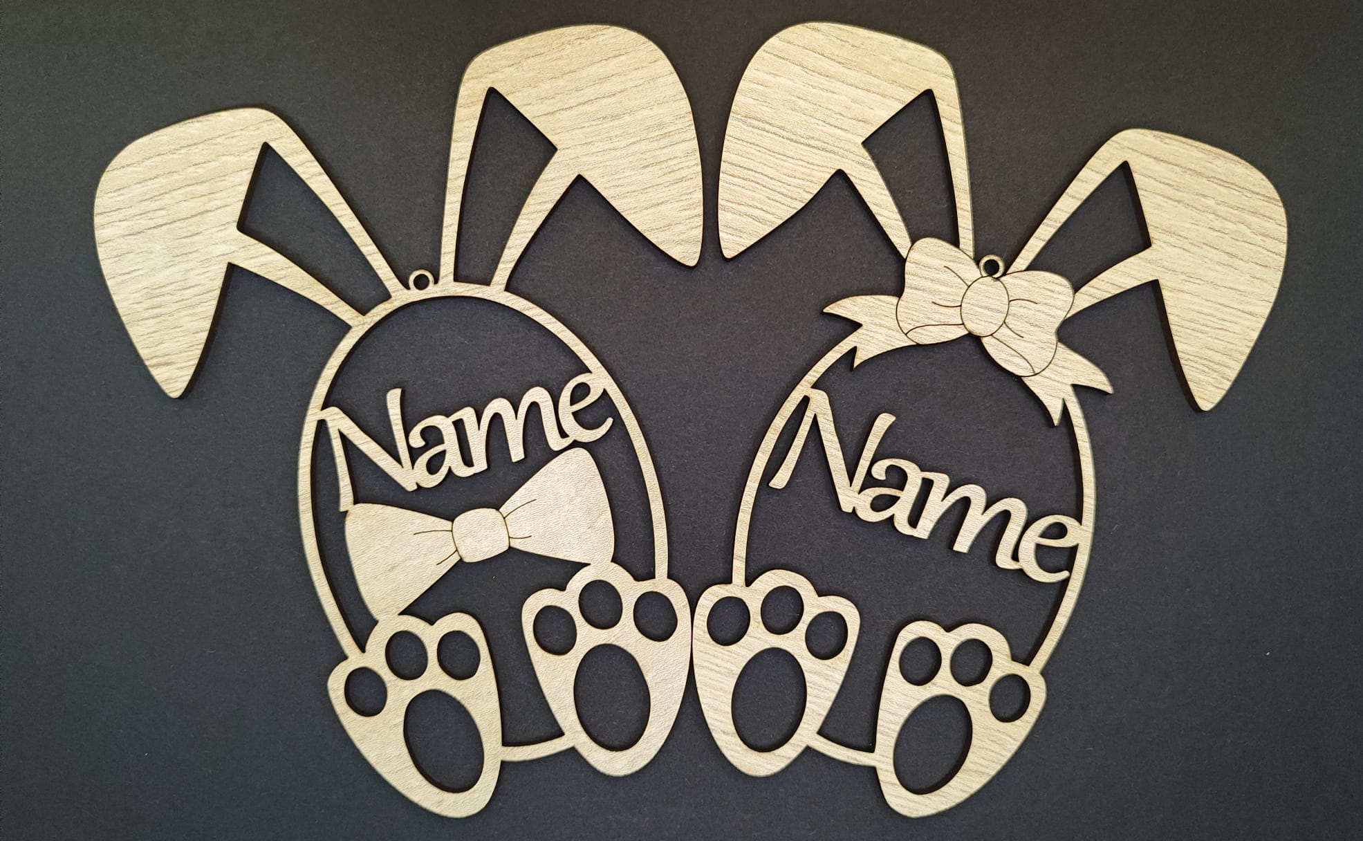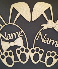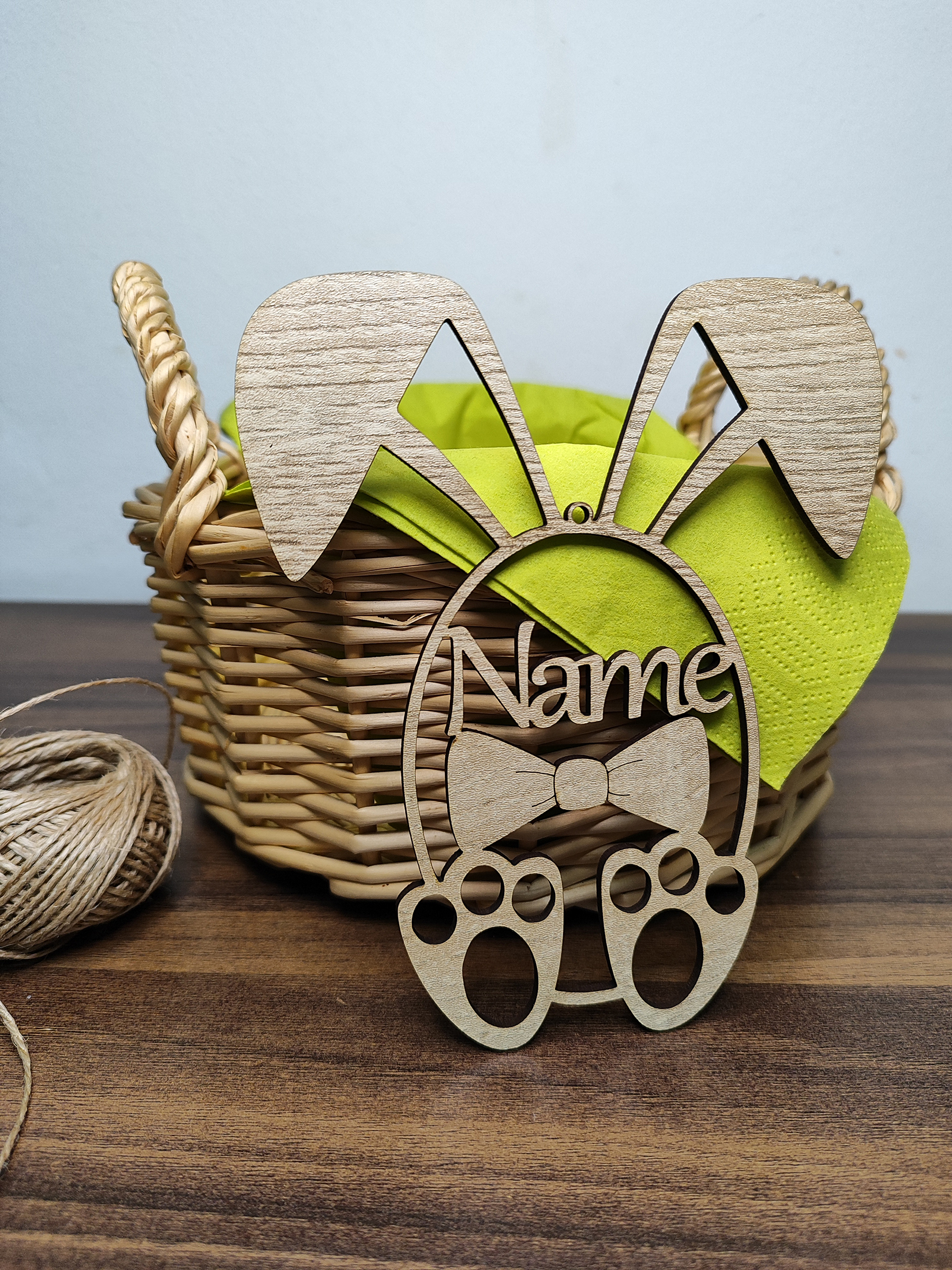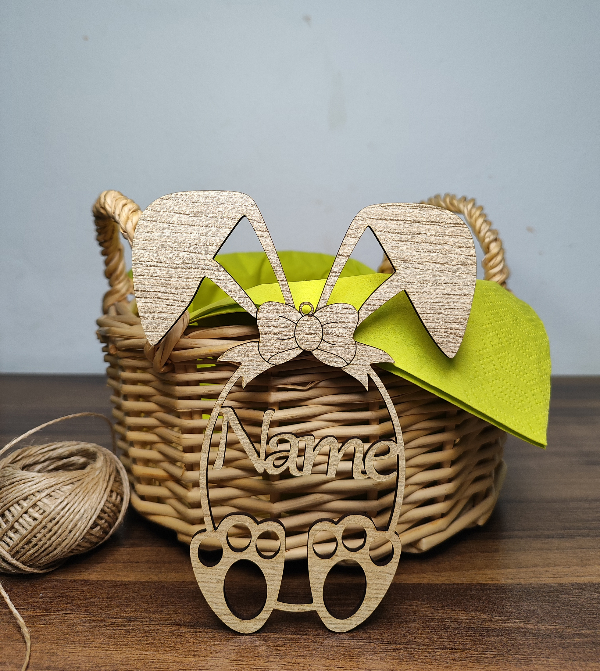 Diese liebevoll gestalteten Holzanhänger in Form eines Osterhasen sind die perfekte Dekoration für Ostern. Die Anhänger, gefertigt aus hochwertigem Holz, können mit einem Namen personalisiert werden und sind in zwei Varianten erhältlich: mit einer Schleife oder einer Fliege.